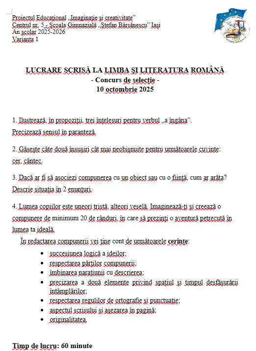 Anunț Concurs Selectie Imaginatie si Creativitate